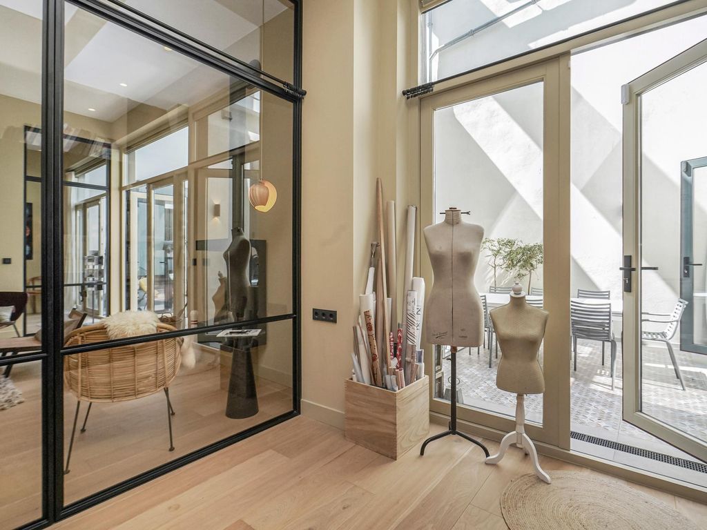 Indeling: Je betreedt het appartement via de zeer ruime inpandige garage en via de fraaie stalen deuren naar de hal. Het appartement heeft hoge plafonds (bijna 4 meter hoog!). Zeer ruime, lichte en luxe keuken met een luxe Stalen fornuis 5 pits inductiekookplaat en grote oven. Daarnaast is de keuken voorzien van een steamer/oven combinaison, vaatwasser, koelkast, vriezer en magnetron/oven combinatie, en een ovenpiano. De vloer is bedekt met mooie Italiaanse tegels van het merk Kronos, en er is een koperen Wave afzuigkap. Mooie, grote ramen zijn voorzien van drie dubbele beglazing, zodat je in de keuken niets van buiten hoort. De muur is bekleed met houten akoestische panelen en er staat een gezellige bank waar je een kopje koffie kunt drinken in de ochtendzon.