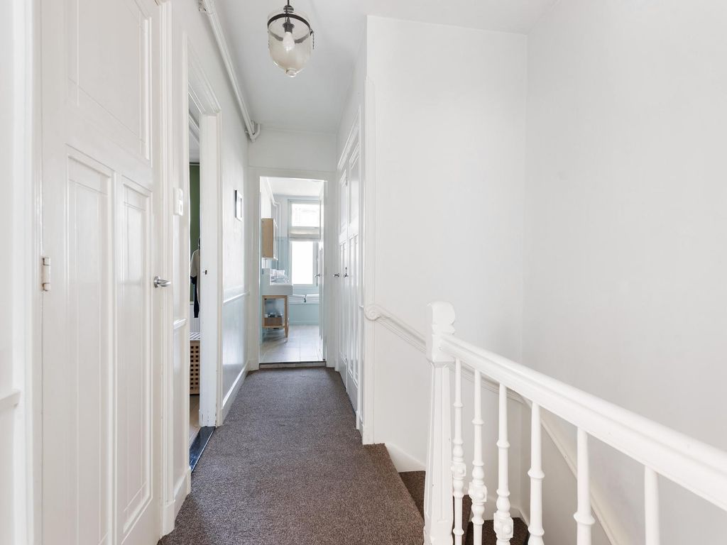 overloop met groot daklicht, grote bergkast en modern toilet identiek aan die op de 1e etage, ruime badkamer met inloopdouche met blauwe mozaïek tegels met sierrand, ligbad, radiator en 2 wastafelmeubels, grote achterslaapkamer voorzien van ruime vaste kast en openslaande deuren naar ruim zonnig balkon, grote voorslaapkamer met 2 vaste kasten, voorzijkamer, alle kamers zijn voorzien van eiken parketvloeren in white wash;