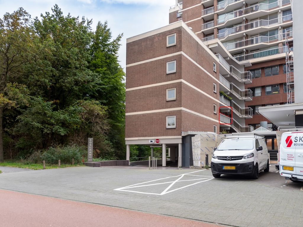 Onder het gehele pand ligt een grote parkeergarage waarin eventueel een parkeerplaats gehuurd kan worden. Er bevinden zich ook eventueel te huren bergingen en fietsenstalling.