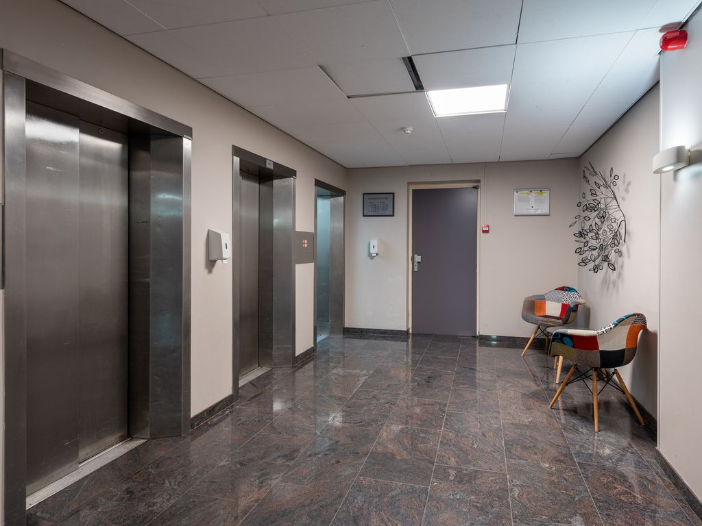 Via de moderne centrale hal van het hoofdgebouw gaat u met een van de drie liften of trap naar de galerij op de tweede etage die toegang geeft tot de flat. U komt binnen in een entreehal met grote berging waarin ook een wasmachienaansluiting zit. Dan komt u in de centrale hal waar alle vertrekken op uitkomen.