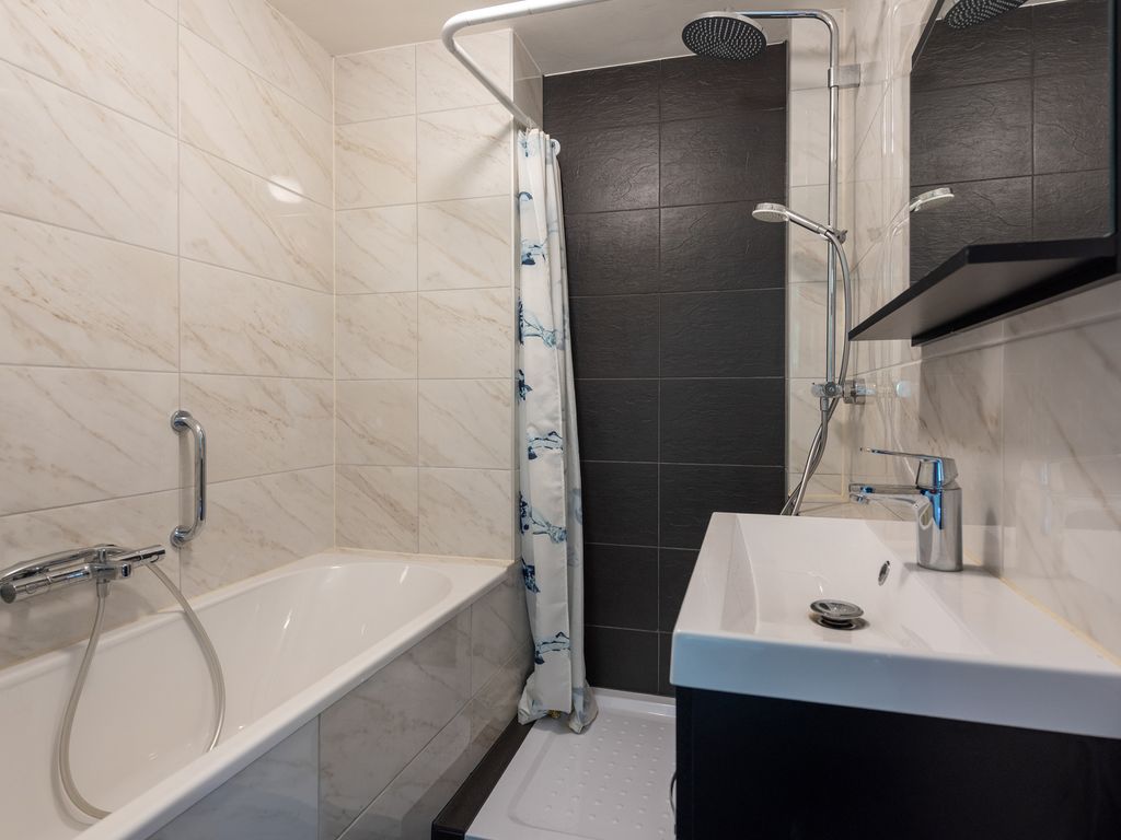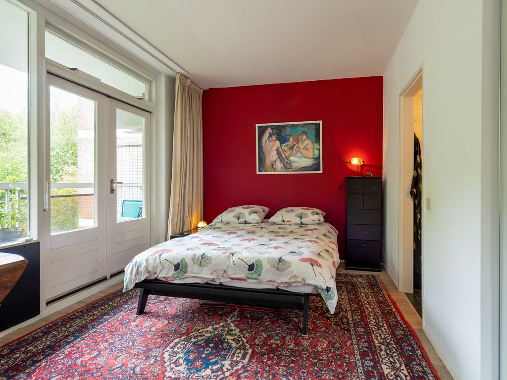 De hoofdslaapkamer is eveneens gelegen aan het bos en heeft toegang tot het balkon middels openslaande deuren. Er is hier een badkamer en suite met ligbad, douche met regendouche en badkamermeubel. De derde kamer ligt aan de galerijkant en is momenteel in gebruik als kantoor/werkkamer. Deze kamer heeft een inbouwkast.
