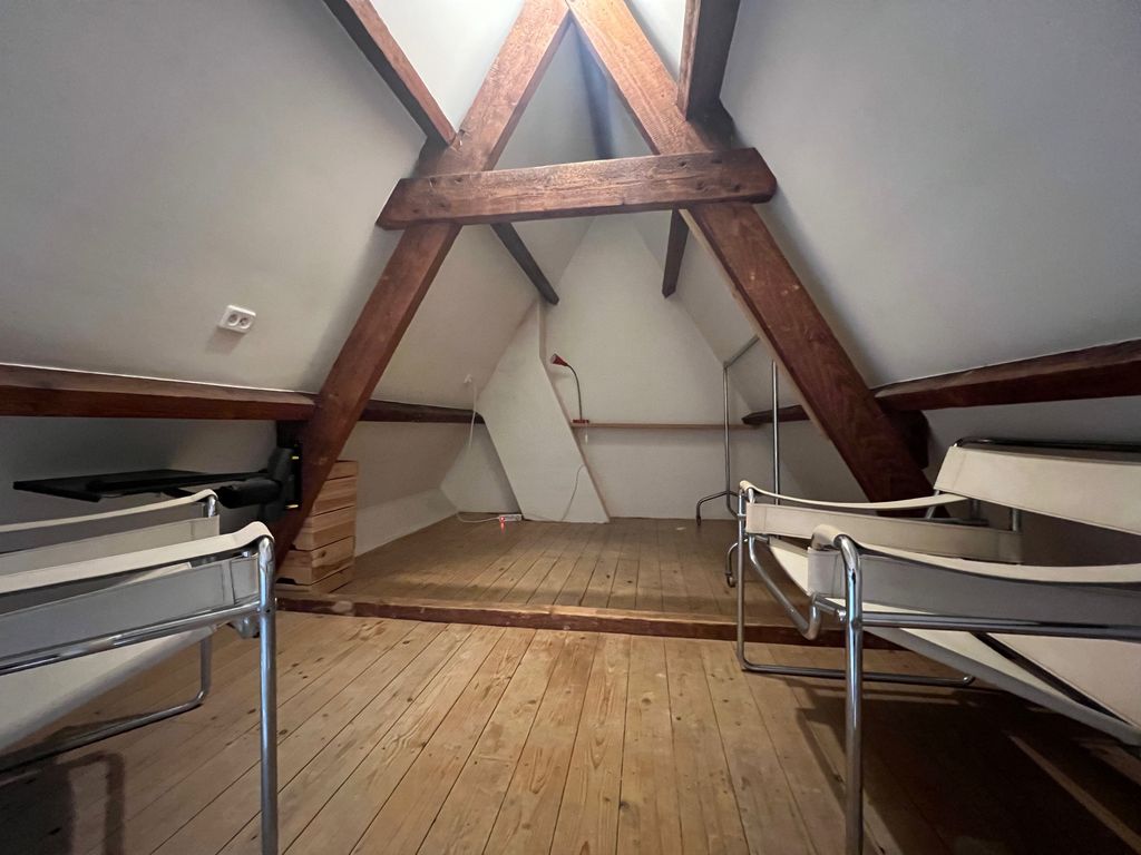 Overloop met toegang tot het toilet. Aan de voorzijde een sfeervolle kamer met schouw. Aan de achterzijde een eenvoudige keuken met vaste kast en deur naar het balkon. Tevens aan de achterzijde een ruime kamer met schouw en openslaande deuren naar het balkon. De indeling op deze verdieping biedt mogelijkheden voor een royale woon-/eetkamer met open keuken.