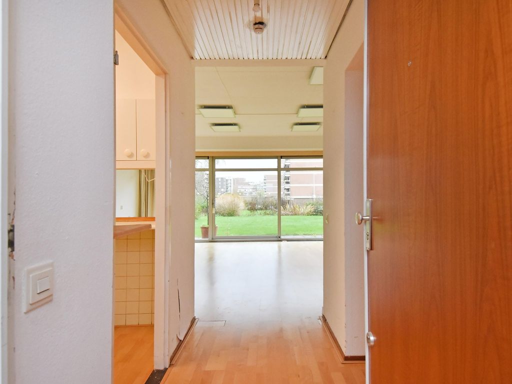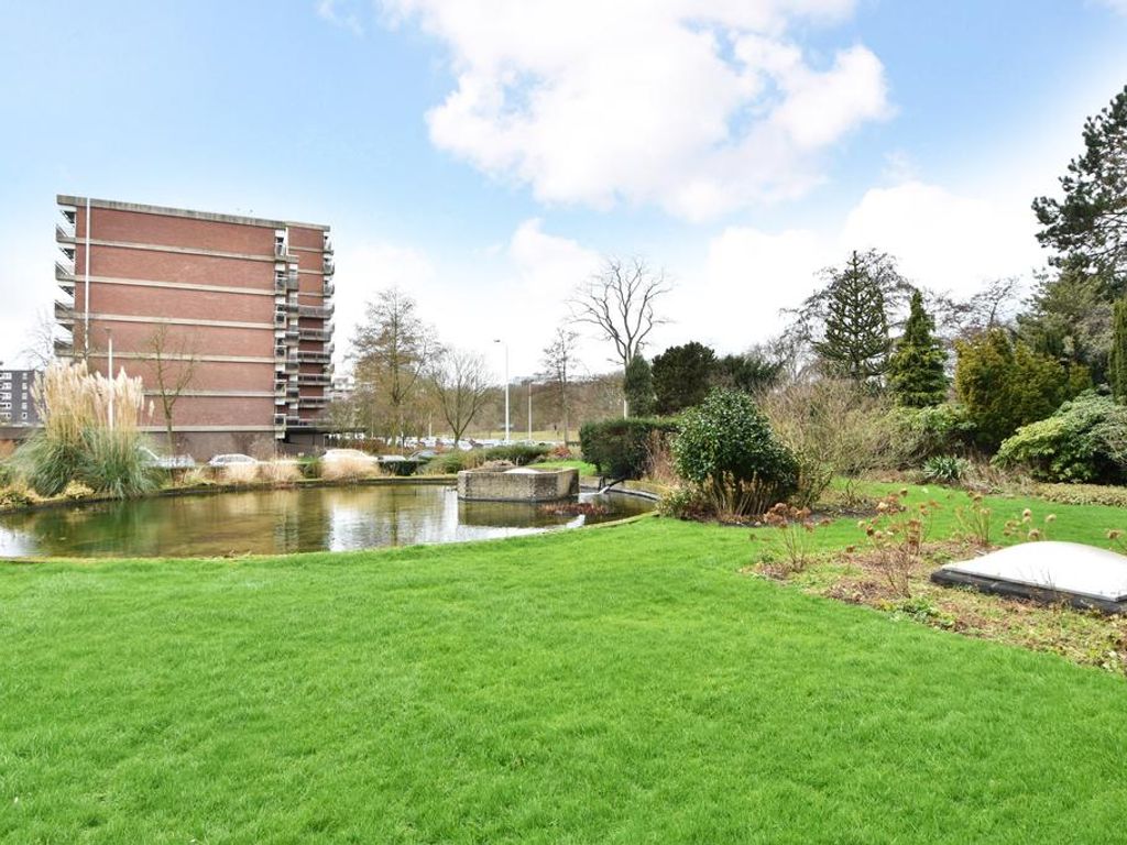 De entree van het appartement is op de begane grond. Bij binnenkomst in het appartement komt u in een ruime hal met garderobe en welke toegang geeft tot diverse ruimtes. De woon-/eetkamer is gelegen op het zuidwesten en geniet veel lichtinval. Via een grote schuifpui stapt men zo het eigen terras op. Vanaf het eigen terras heeft men uitzicht over de gemeenschappelijke tuin met waterpartij welke door de vereniging onderhouden wordt.