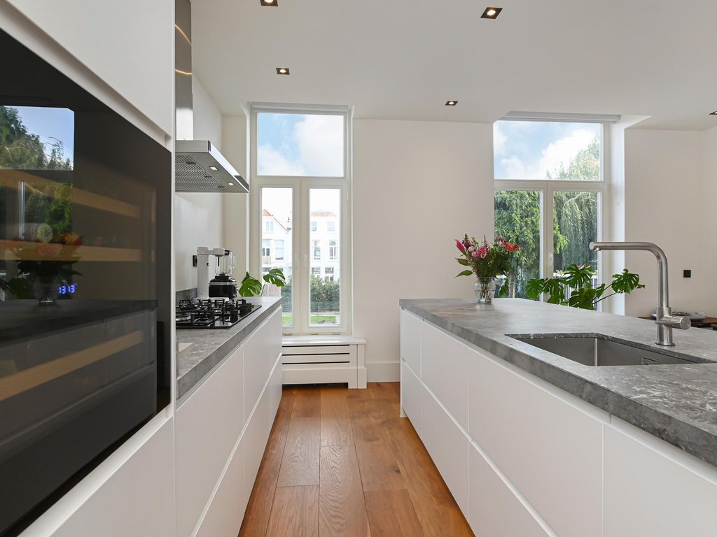 A rare oasis of seclusion and nature in the center of the city, the house is located on a quiet street and features unobstructed views on either side, looking onto parks. It is situated directly behind the charming Piet Heinstraat and Prins Hendrikstraat, which boast a wide range of small-scale restaurants and shops. Furthermore, the Zeeheldenkwartier district is known for its convenient location close to the city center, with access to tram connections, the A12 motorway, international organizations, and Scheveningen beach within cycling distance. Albert Heijn XL is reached in a two minute walk to the end of the street. The streets Veenkade/Noordwal and their wide canal are a few steps away, where the historic steel bridge Hemsterhuisbrug was completely restored in 2024, offering a charming route to Paleistuin, the shops and restaurants of Prinsestraat, and the city center.
