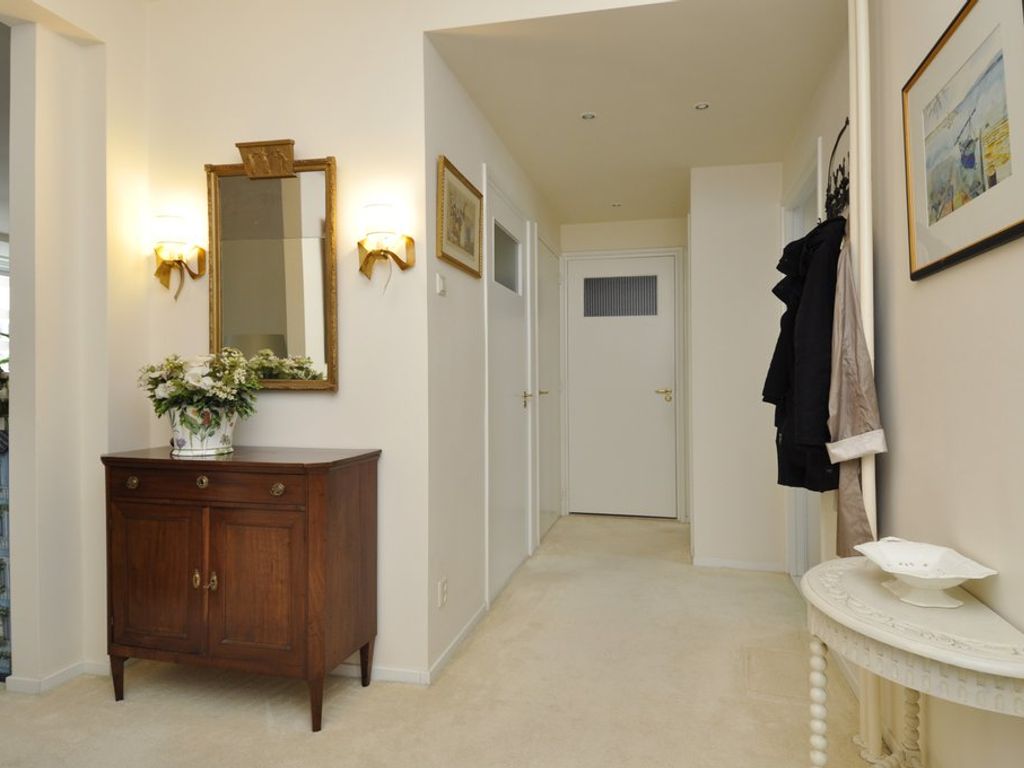 Entree van het appartement: ruime ontvangsthal en meterkast. Doorloop naar de royale, lichte woon-/eetkamer met grote raampartijen en twee deuren naar het zonnige balkon (zuidoost) met elektrische zonwering.