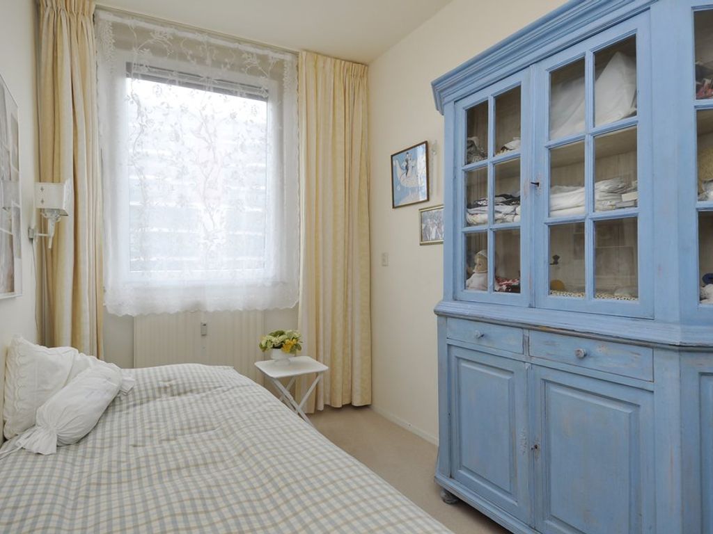 Via de ontvangsthal toegang tot een gang die leidt naar de twee slaapkamers, beide gelegen aan de achterzijde. De hoofdslaapkamer beschikt over een vaste kastenwand.