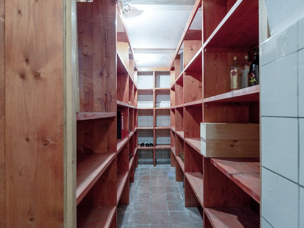 From the central hallway, you enter the large, well-maintained kitchen, which has a semi-open layout connecting it with the dining room. The kitchen also has a back entrance and an adjoining utility room that provides access to the cellar, which consists of three practical rooms.