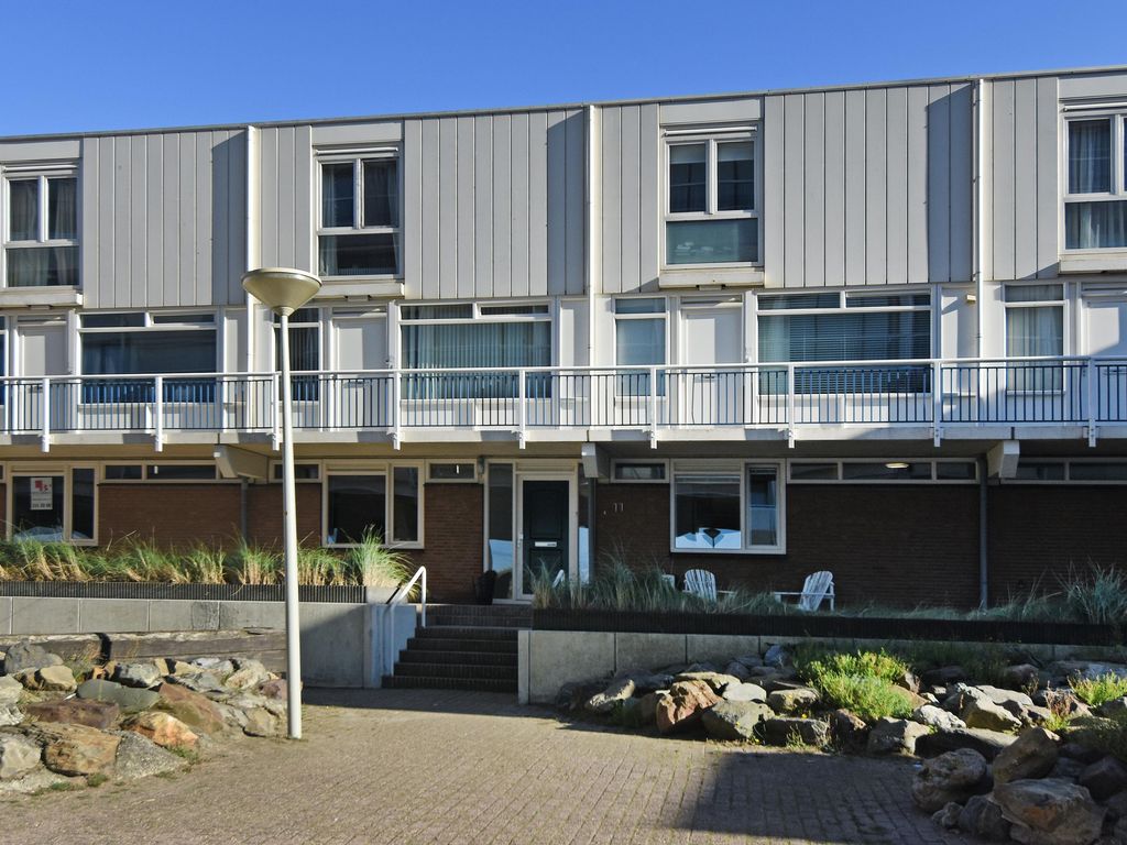 Riant zonnig gelegen terras aan de voorzijde met namiddag en avondzon en uitzicht op zee!