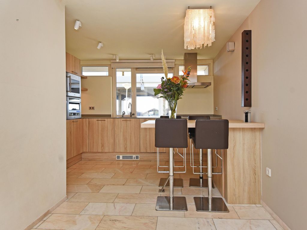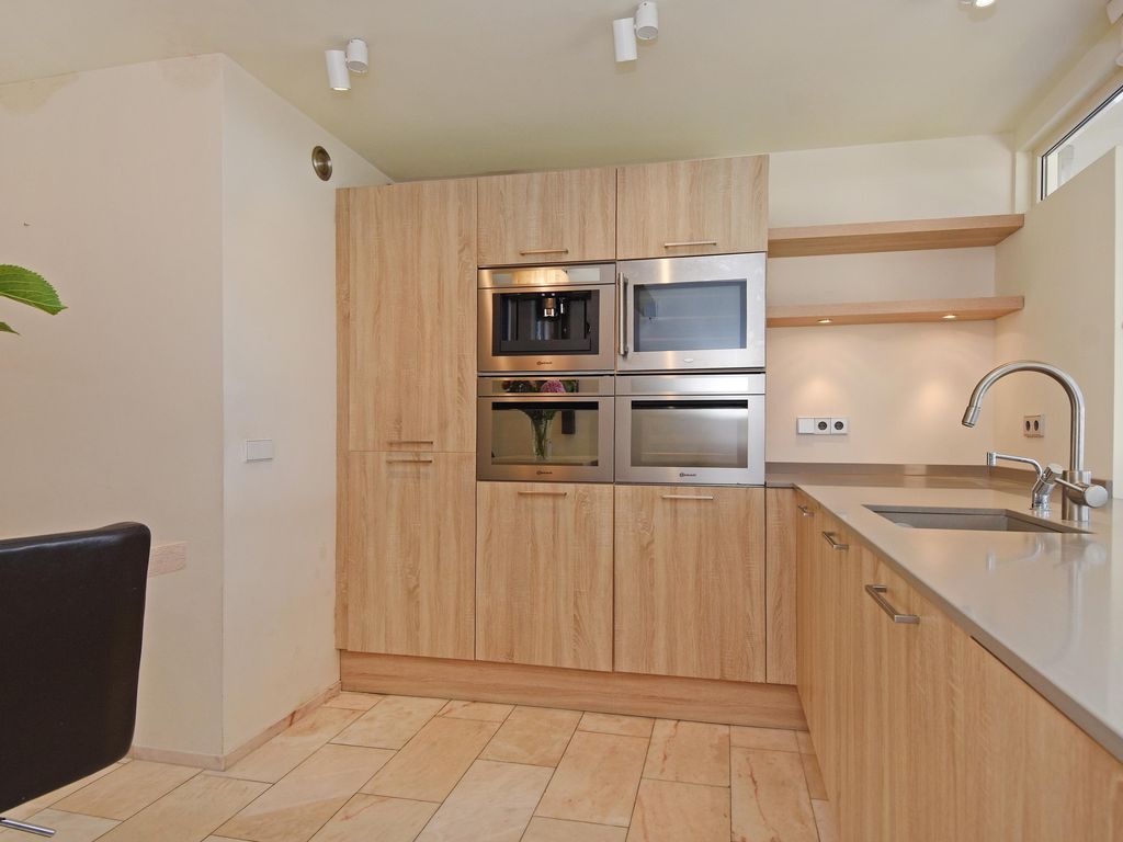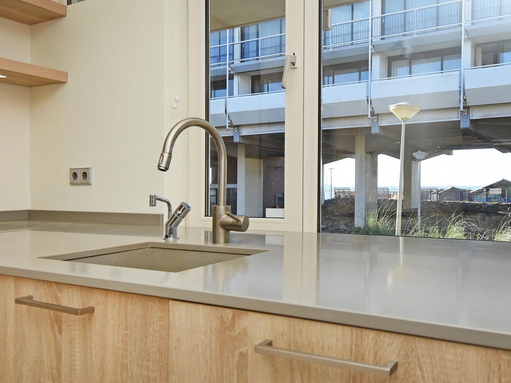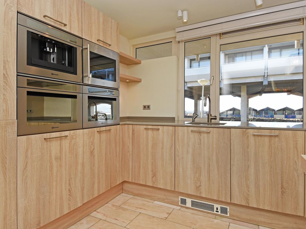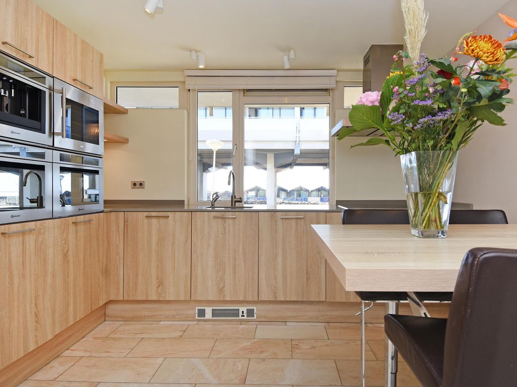 De open keuken is direct verbonden met de woonkamer en is gelegen aan de voorzijde. De keuken is modern afgewerkt en voorzien van alle gemakken en ingebouwde apparatuur: een koelvriescombinatie, een vaatwasser, een koffieapparaat, een oven, een wijnklimaatkast, een stoomoven, een inductiekookplaat, een rvs afzuigkap en een bijpassende tafel. En vanuit de keuken uitzicht op zee!