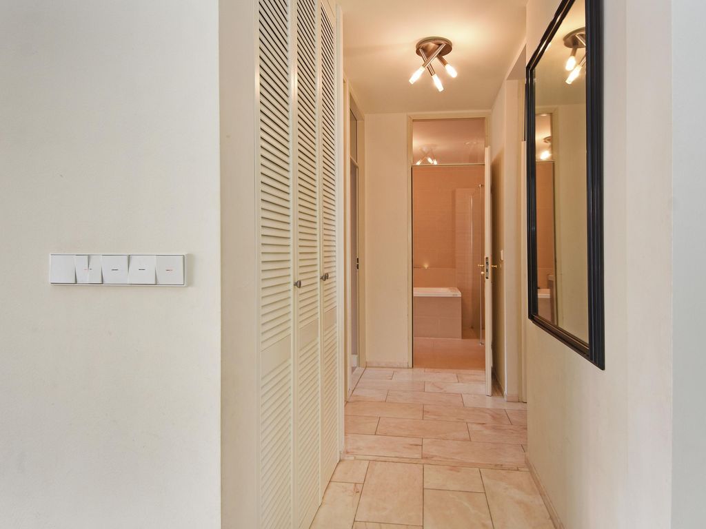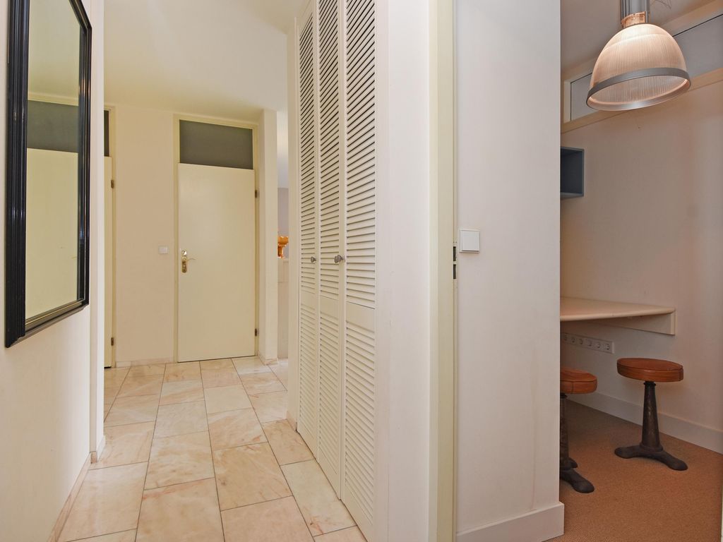 Het appartement heeft een entree gelegen aan het terras aan de voorzijde. De L-vormige hal is ruim met name bij de entree heeft de gang een fijne breedte van 1,92 meter. Verder zijn in de gang een meterkast met recent geplaatste CV-ketel en een modern hangend gastentoilet met fonteintje en inbouwspotjes.
