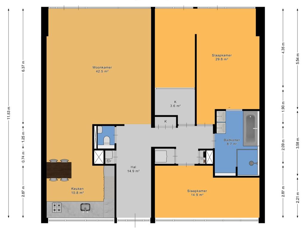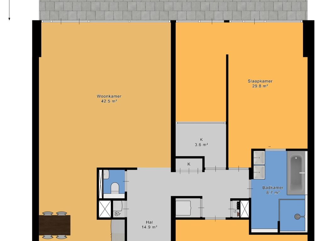- Woonoppervlak 135m2, terras voorzijde ca. 43 m2, terras achterzijde 65 m2