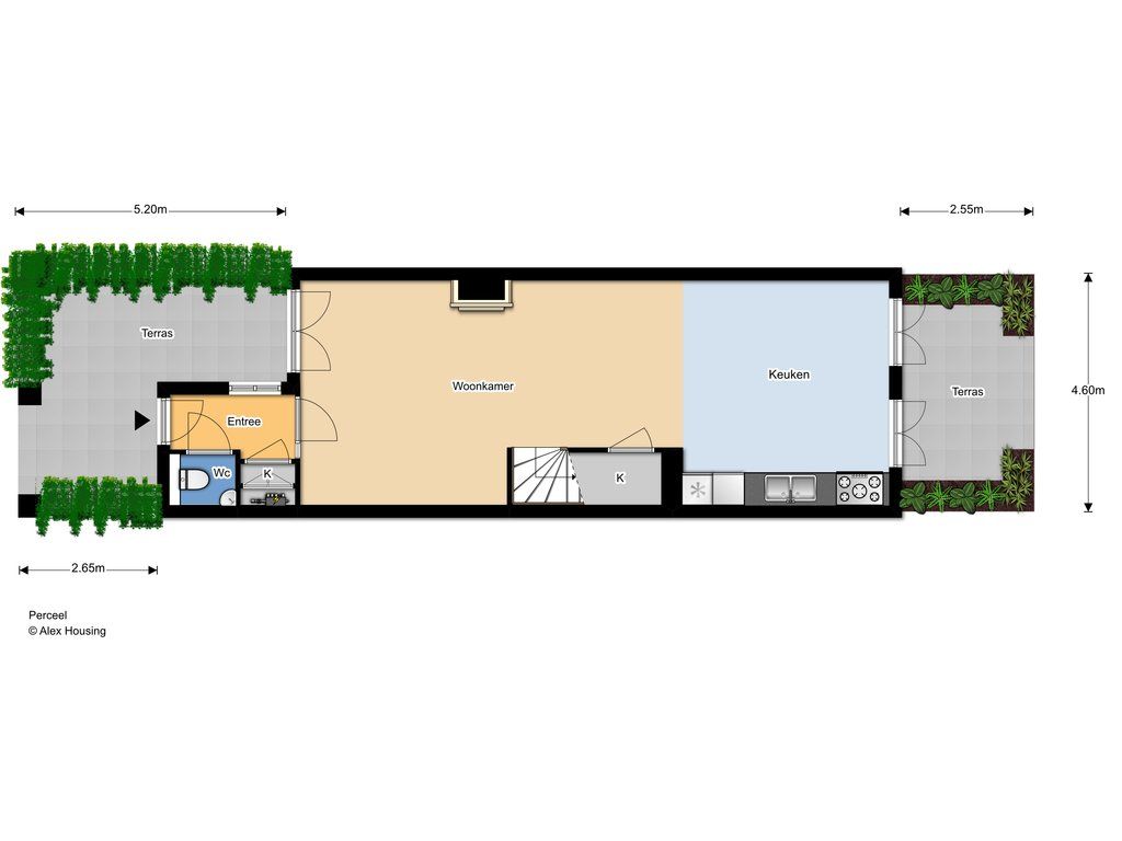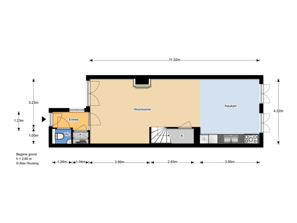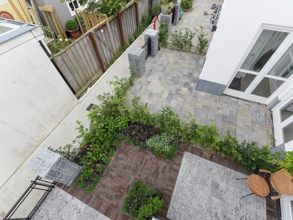Lay-out: off street entrance through a secure gate, private entry, hallway, toilet, good sized living/dining room (ca. 11.32x4.32) with fire place, new fully-equipped open kitchen with oven, fridge/freezer, quooker (instantly hot water tap), floor heating throughout the ground floor, nice patio at the back (4.60x2.55) and garden at the front side (5.20x2.65x4.60) with water sprinkling system, both accessible through French doors, stairs to the 1st floor;