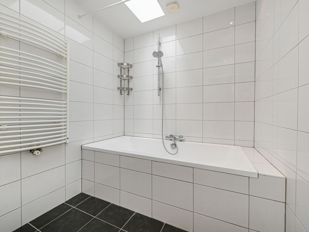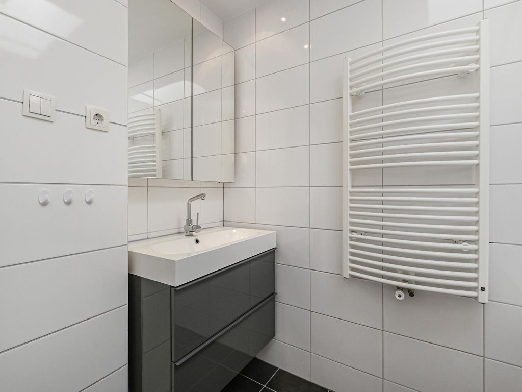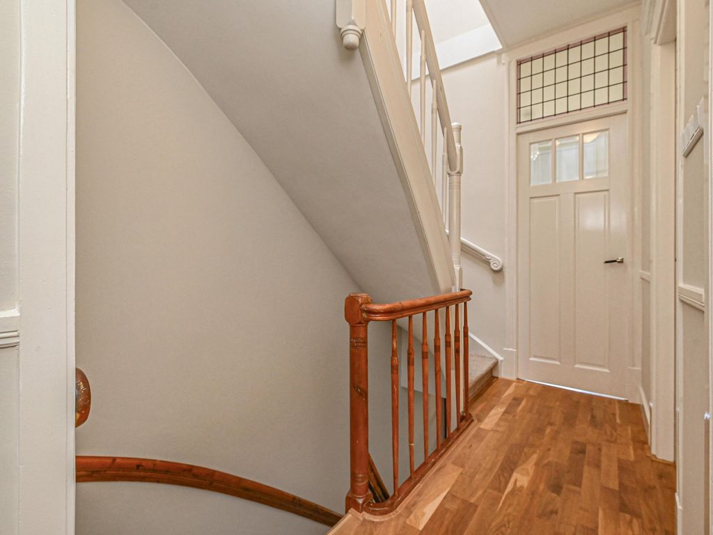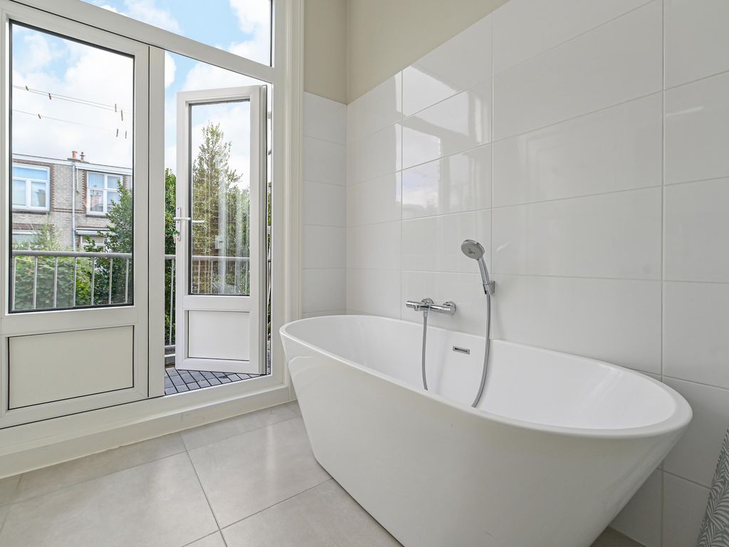 2e verdieping; overloop, modern toilet, kleine achterzijkamer met opstelling wasmachine en droger. Grote achterzijkamer met inloopkast en CV-combiketel, grote voorslaapkamer met balkon en een kleine voorzijkamer.