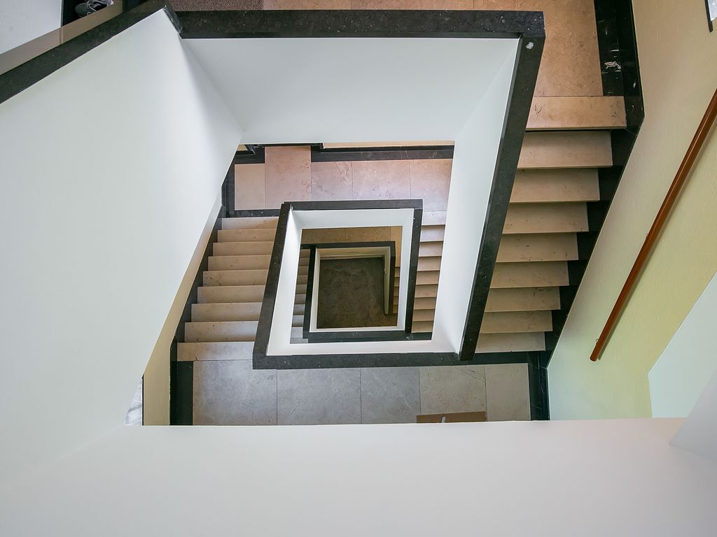 On the fourth floor, there is a spacious and bright attic storage room (approx. 11 m²) with washing machine and dryer connections and the central heating boiler. An additional storage room (approx. 5 m²) is located on the ground floor.