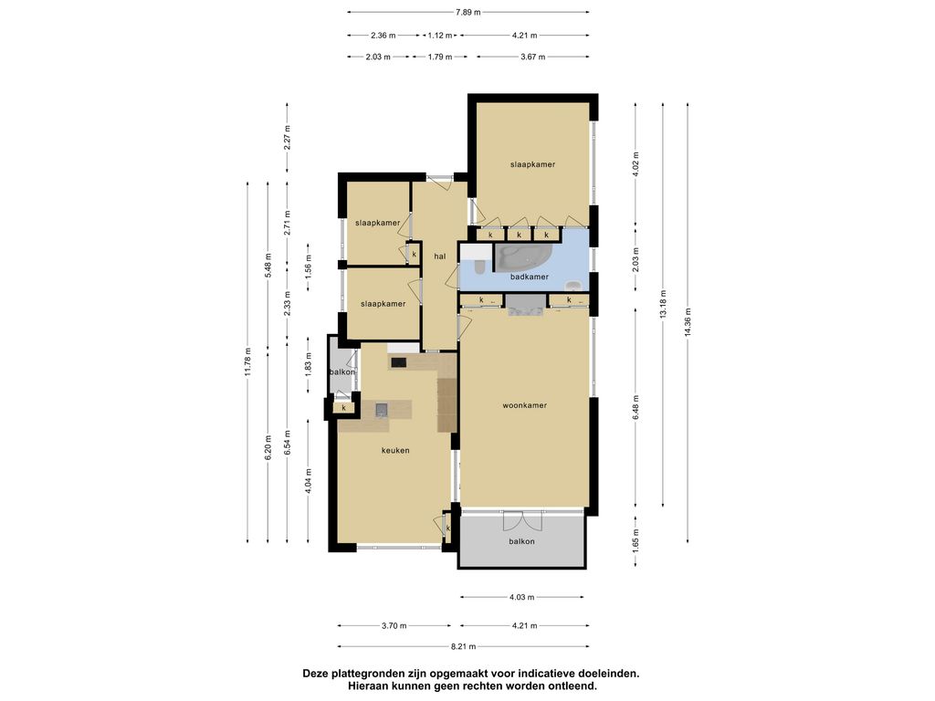 Hoofdentree met bellentableau en brievenbussen; hal en trappenhuis naar de derde etage, entree appartement, vanuit de hal heb je toegang tot alle vertrekken. Ruime en lichte woonkamer met balkon gelegen op het noordwesten, middels ensuite deuren toegang tot de eetkamer met open keuken inclusief diverse inbouwapparatuur, balkon gelegen op het noordoosten. Twee slaapkamers aan de achterzijde, een derde slaapkamer aan de voorzijde. De nette badkamer voorzien van een douchebad, wastafelmeubel en wc. Een ruime zolderberging op de vierde etage en berging op de begane grond.