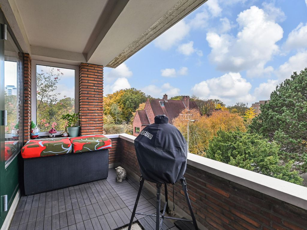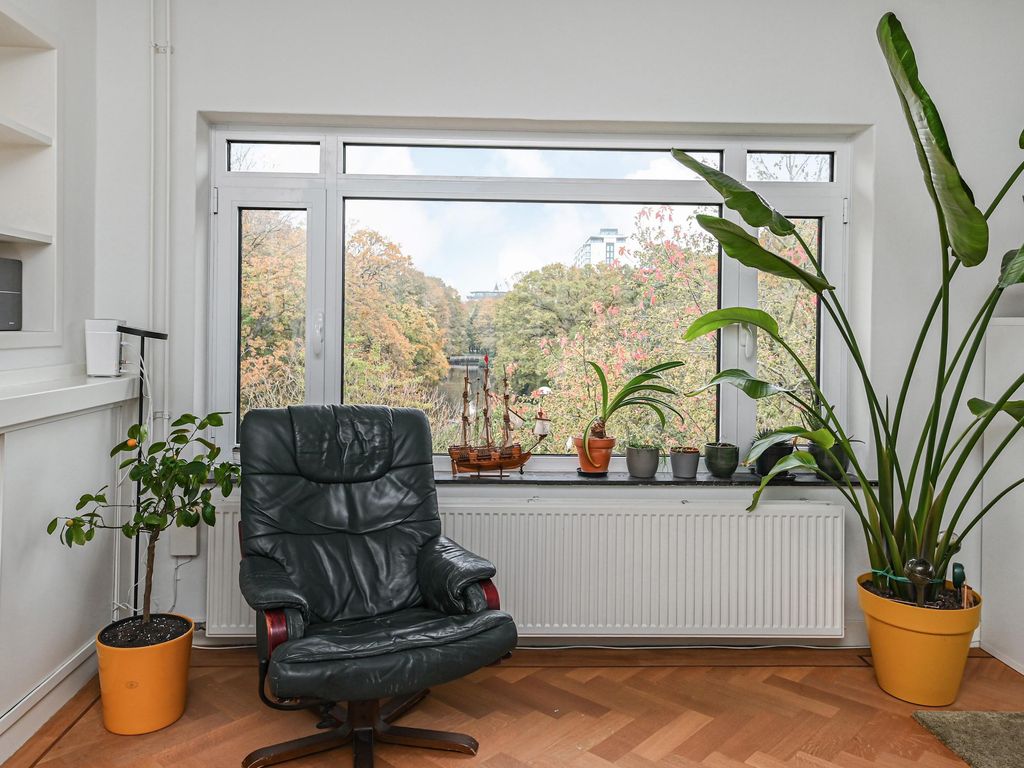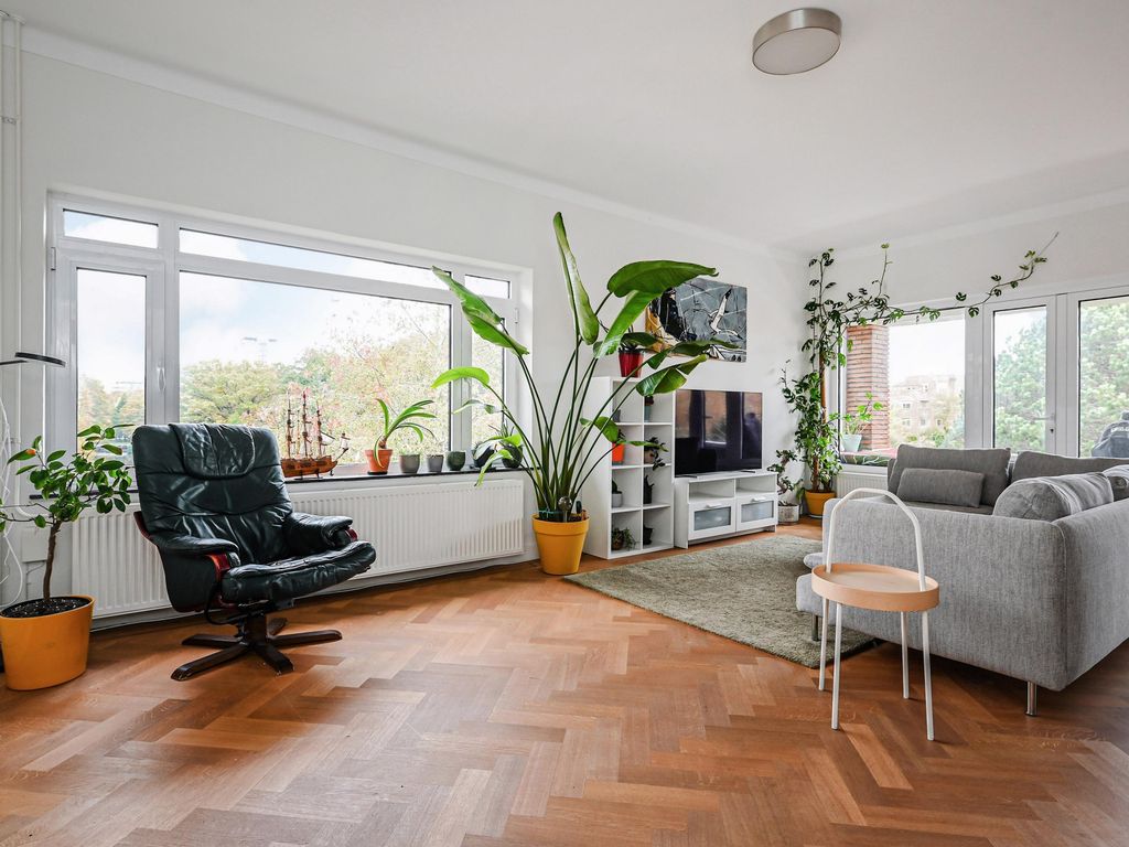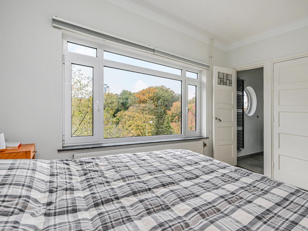 This stunning top-floor apartment on Van Hogenhoucklaan is located in the highly sought-after Benoordenhout area. Through the impressive stairwell, you reach the third floor of the charming and small-scale apartment complex “Het Eiland.” The residence enjoys wide views on three sides, offering magnificent vistas of the lush trees and pond of Landgoed Arendsdorp, the partially communal garden with its monumental tree, and the nearby sports fields.