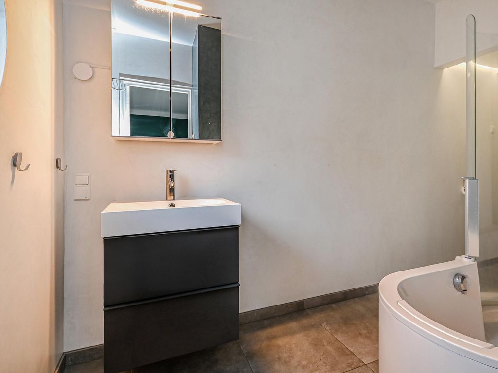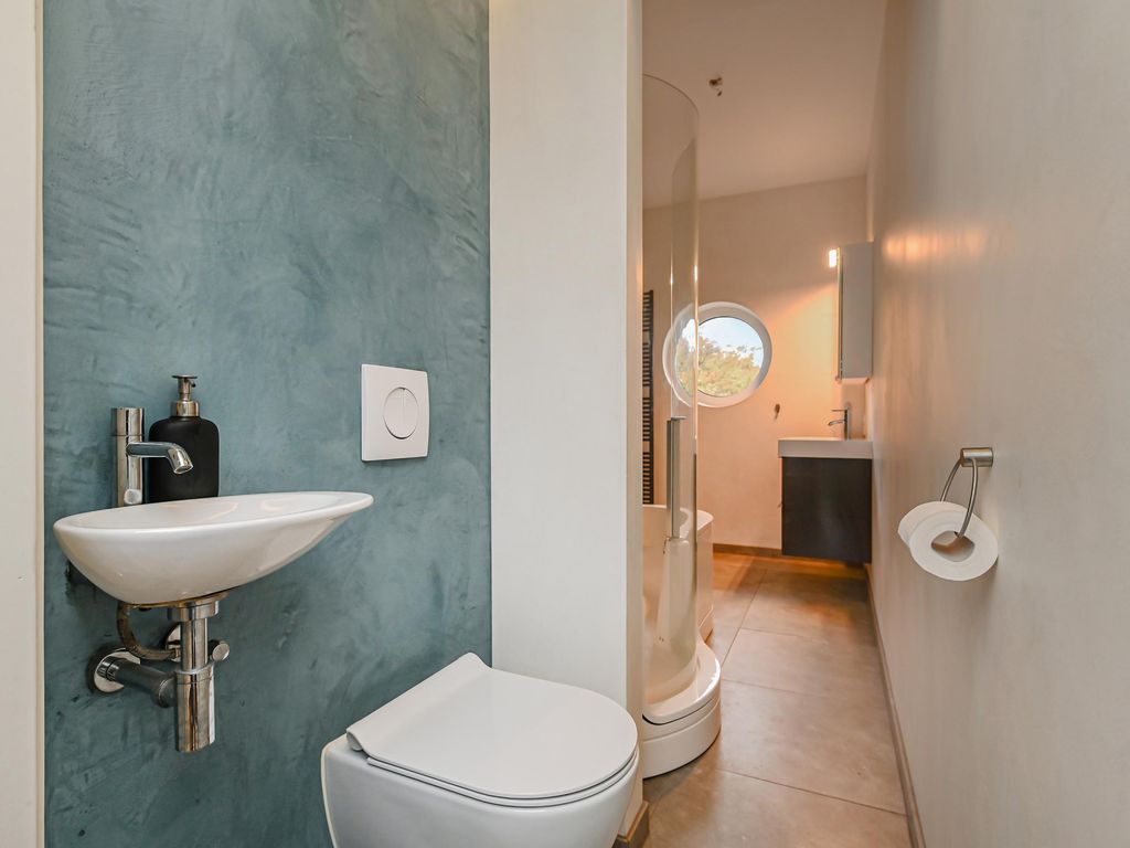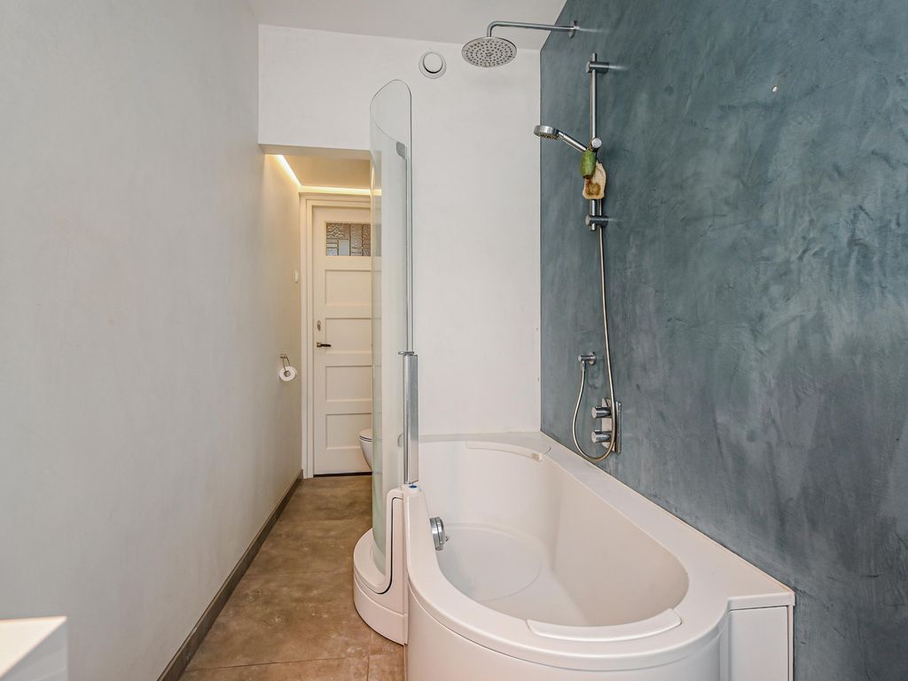 There is a second balcony facing northeast, three bedrooms, and a stylish bathroom with decorative stucco walls, an Artweger shower bath, designer washbasin unit, and toilet.