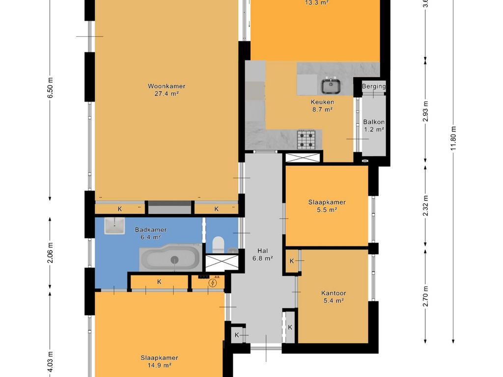 - Woonoppervlakte ca. 97 m2; gemeten conform de meetinstructie NEN2580;