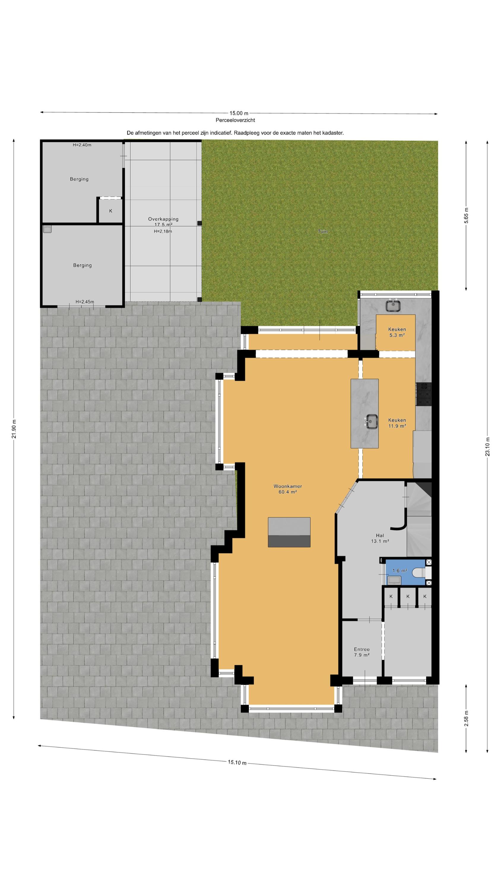 Entree, vestibule met garderobe, centrale hal met fraai trappenhuis, wc, berging, toegang tot de droge kelder (36 m2) verdeeld over 3 ruimtes. Brede zitkamer aan de voorzijde met kastenwand en openhaard, aan de achterzijde een ruime eetkamer met haard en openslaande deuren naar de zonnige besloten achtertuin met sfeervolle 'Gooische hut' met open haard. Grote open keuken met eiland en voorzien van moderne inbouw apparatuur.