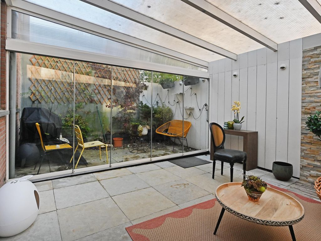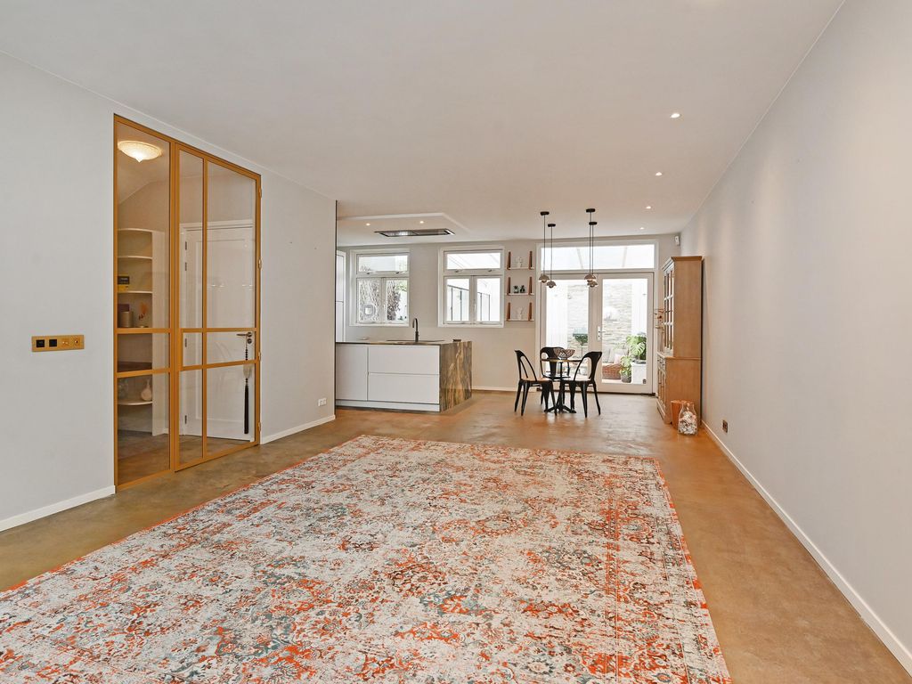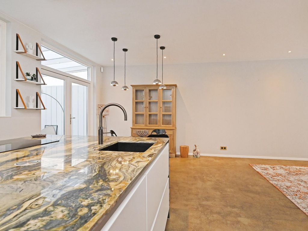 Via een prachtige stalen deur kom je in de royale, doorgebroken woon- en eetkamer met een stijlvolle betonnen vloer voorzien van vloerverwarming en een luxe open keuken met kook- en spoeleiland en inbouwapparatuur. Vanuit de woonkamer toegang tot de achtertuin. De achtertuin is onlangs gerenoveerd en voorzien van een serre. Een heerlijke plek om thuis te kunnen genieten van de ochtend- en middagzon en wat een verlengde van de woon-/eetkamer is.