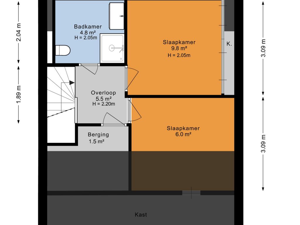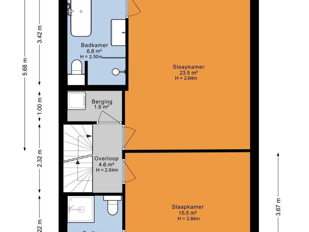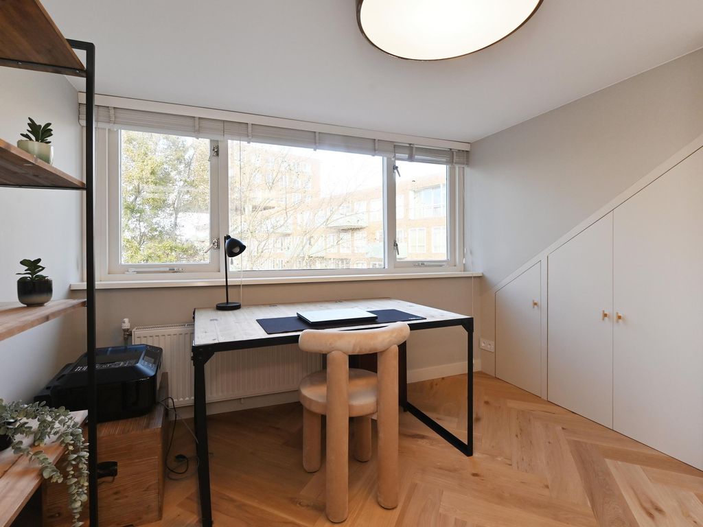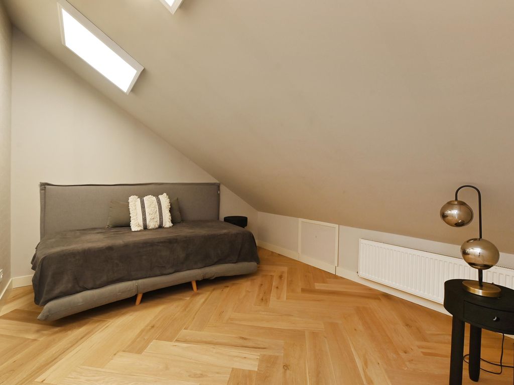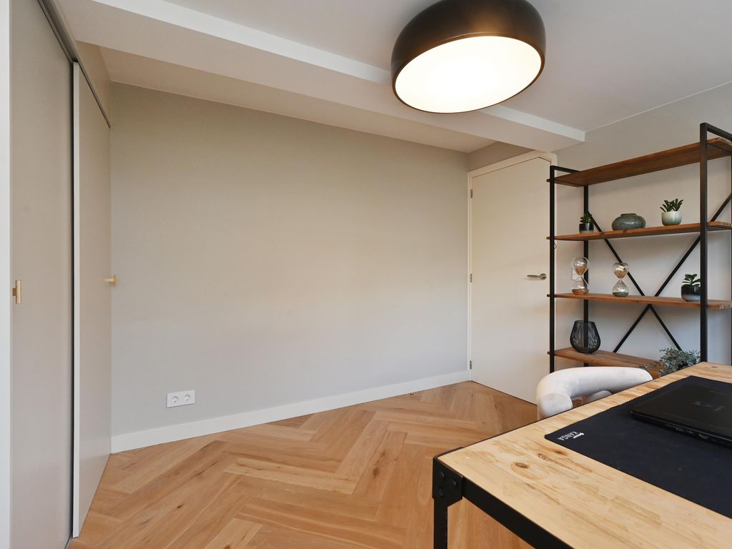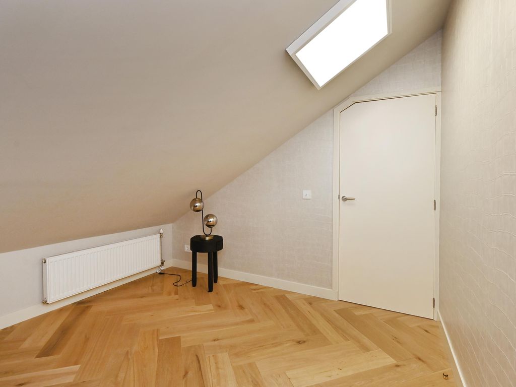 Landing with large storage room. (Bed)room at the front with the possibility of installing a dormer window or skylights (subject to approval from the municipality of The Hague). Spacious bedroom at the rear with a large dormer window. A third spacious bathroom with a walk-in shower, vanity with vanity, modern wall-hung toilet, and designer radiator.